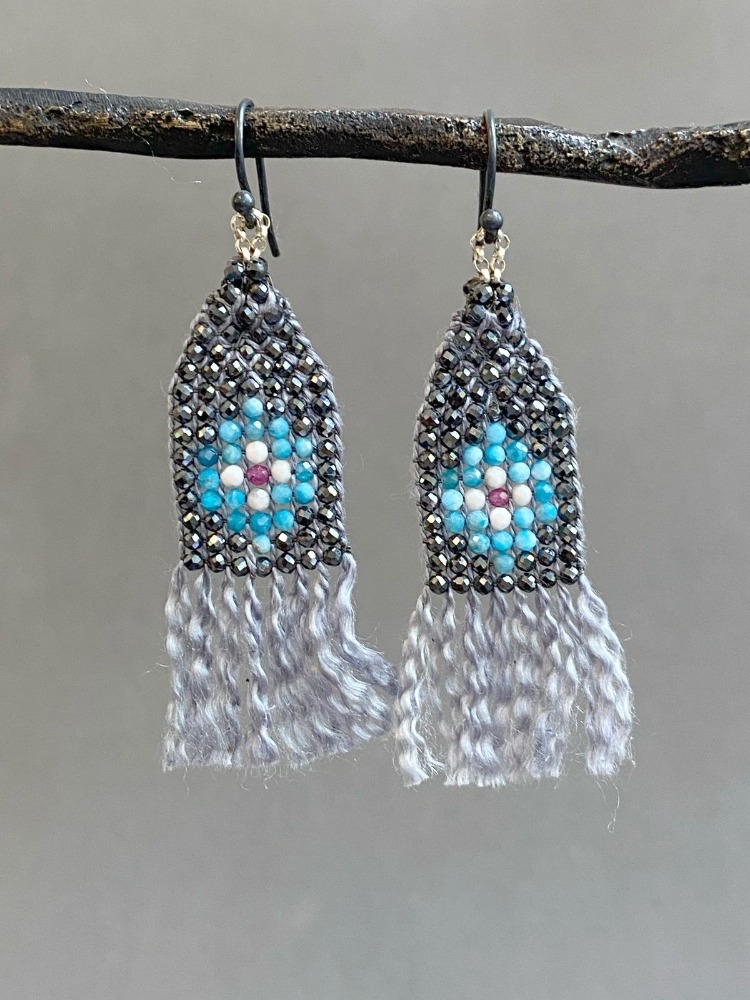 Earrings embroidered by our Huichol artisans