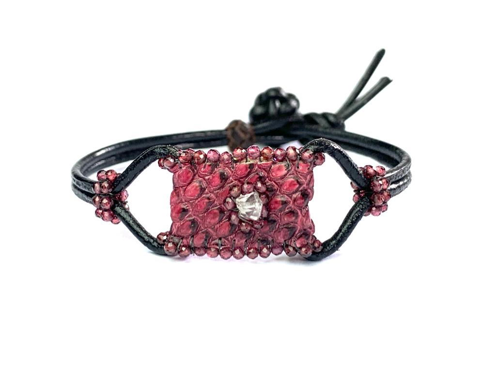 When making your purchase, in the section that says "Comments about your order" indicate which bracelet you want: red with garnets, golden with pyrites