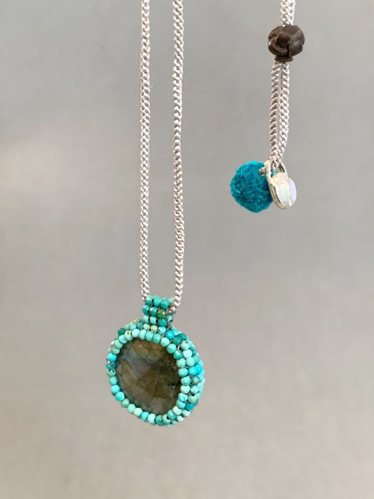 When making your purchase, in the section that says "Comments about your order" indicate which necklace you want: classic turquoise - labradorite rubies (pink stones) - labradorite multicolor turquoise - labradorite SKU: 3039