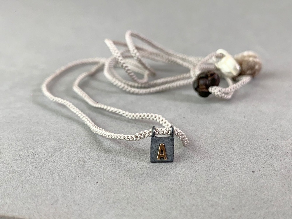 Silk necklace, with a silver .925 plaque and letter A in 14k gold.