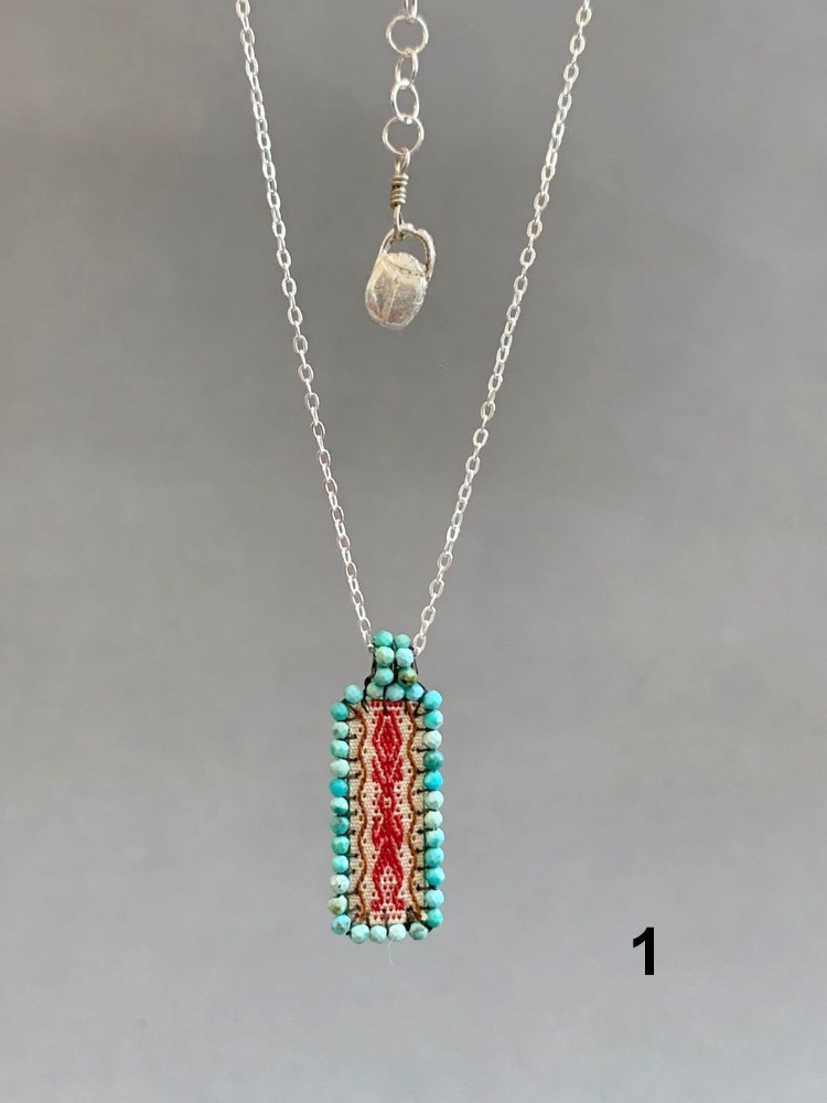Waist loom necklace made in Oaxaca, with different figures, bordered by semiprecious stones, has a fine .925 silver chain.