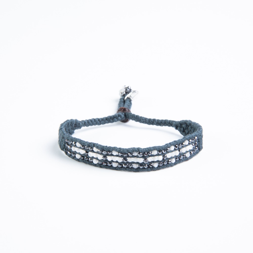 GRAY BRACELET WHITE STONES WITH BLACK