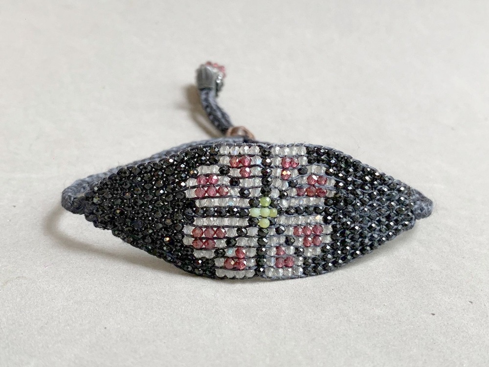 Hand-woven bracelet by Mexican artisans. Made with silk thread and has a leather adjuster to close SKU: 2413