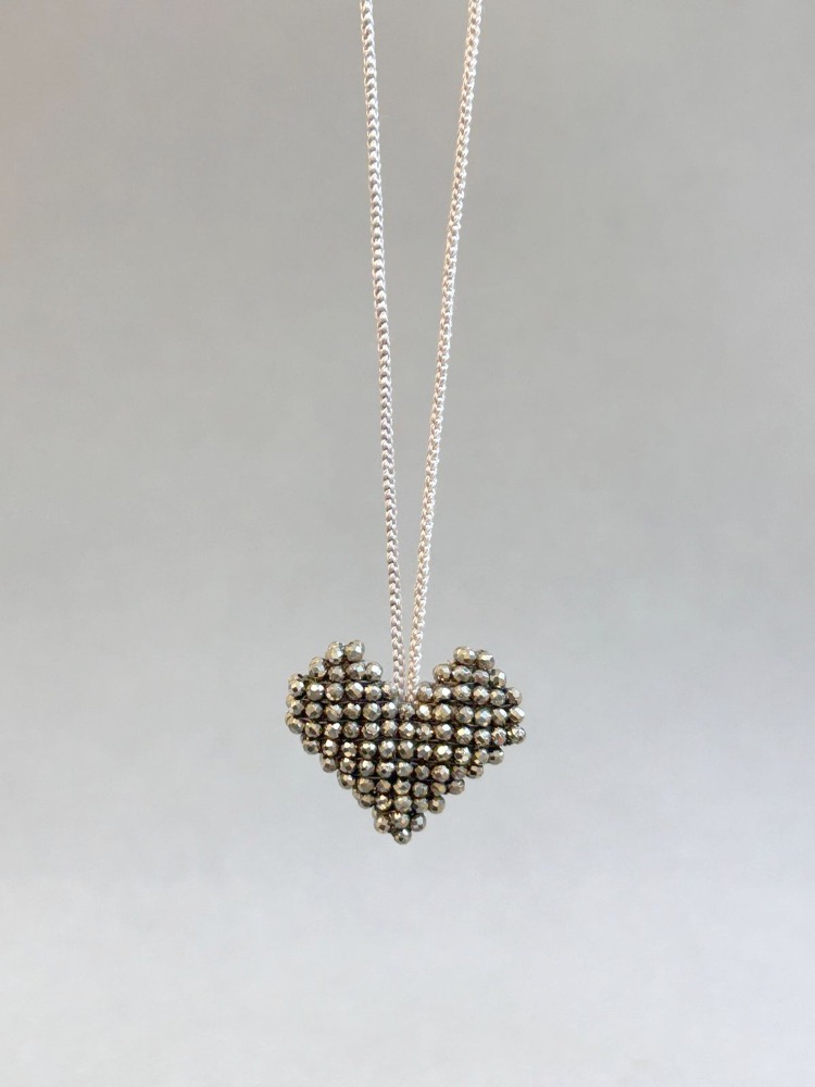 Necklace woven in silk with a heart pendant made of 1mm faceted semiprecious stones.