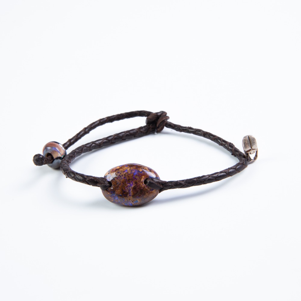 Bracelet of 4 hand-braided leather strips with an Australian opal and another smaller button SKU: 2645