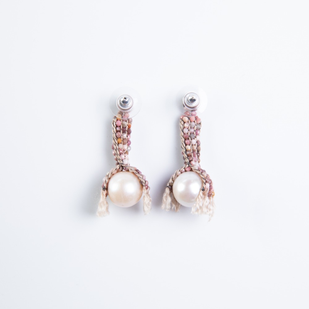 The posts or hooks are made of .925 silver, the loom is made of silk threads.