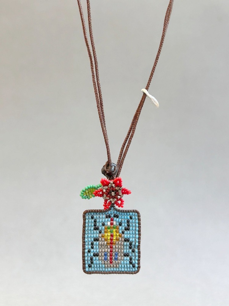 To adjust, it fastens with a leather slider. It can also be worn as a necklace.