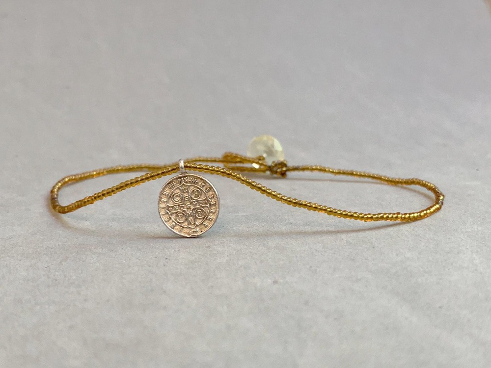 Crystal bracelet with a mini Saint Benedict medal. 925 silver