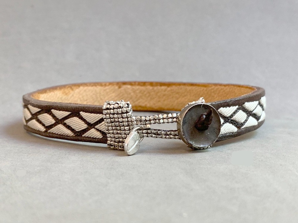 Embroidered bracelet with pita fiber, with a 925 silver button and .999 fine silver beads. Measurements in the last photo